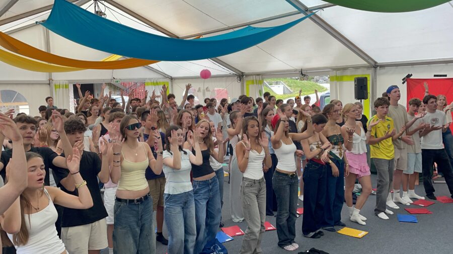 Alors, en premier lieu, comme on peut voir avec la déco de l’équipe clap, sous l’écran “juste ose”, avec ce camp, on nous demandait, on nous permettait d’oser, et c’est ce que j’ai pu faire. En effet, en faisant la prépa, j’ai dû d’abord oser être dans la team soirée et pouvoir animer vos soirées en surmontant le regard des autres, et en étant Denis Brogniart. J’ai aussi osé tester de nouvelles activités et j’ai osé faire de nouvelles rencontres avec de très belles personnes. J’ai osé participer aux remontées pour partager mon vécu et mon expérience. J’ai osé faire confiance à mon petit groupe, en lui confiant tout ce qui faisait ma vie, en allant de mes qualités jusqu’à mes relations, en passant par les épreuves que j’ai dû traverser et par mon rapport à Dieu, ce qui m’amène à mon 2ᵉ point.