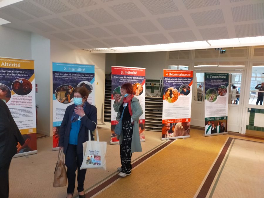 Les panneaux assemblent avec justesse des photos de couples prises lors des sessions, des témoignages de participants, des psaumes et des textes éclairant les enjeux et les bienfaits de ce partenariat au service de l’accompagnement des couples.